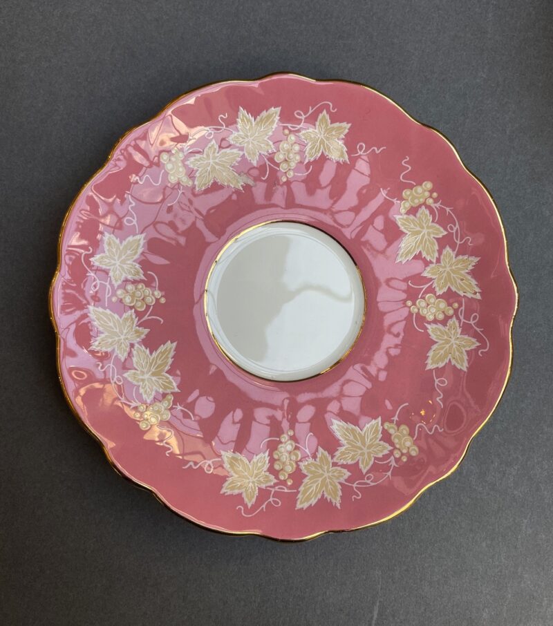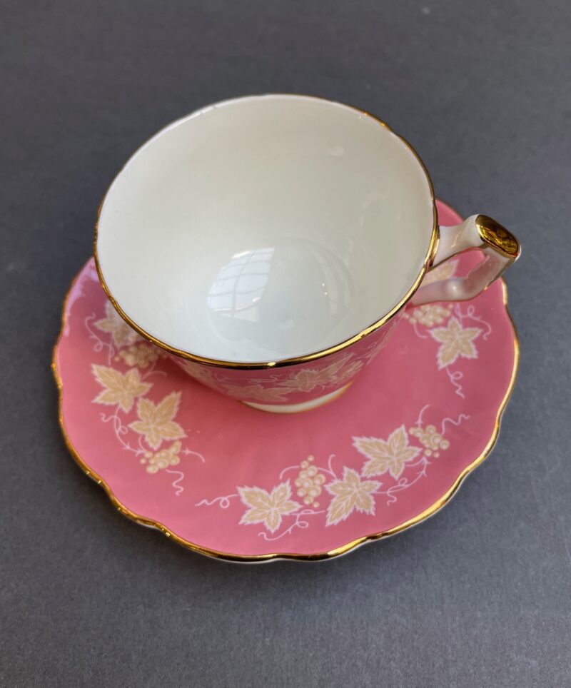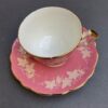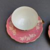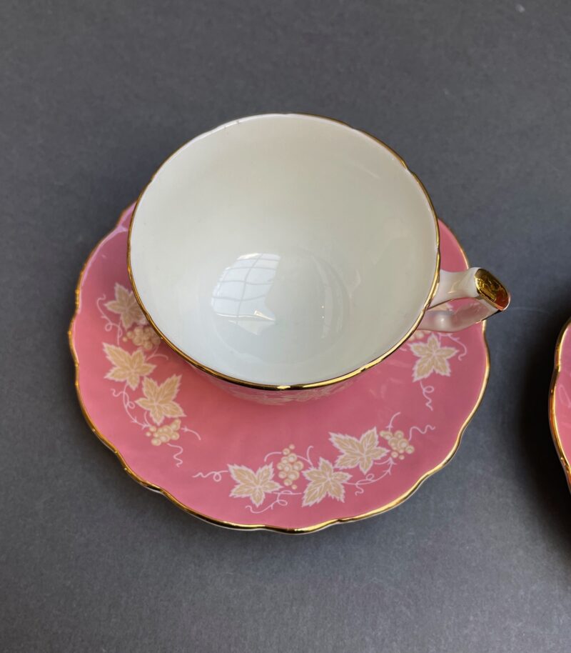 Pair of Pink Aynsley Cups & Saucers with Leaf Pattern