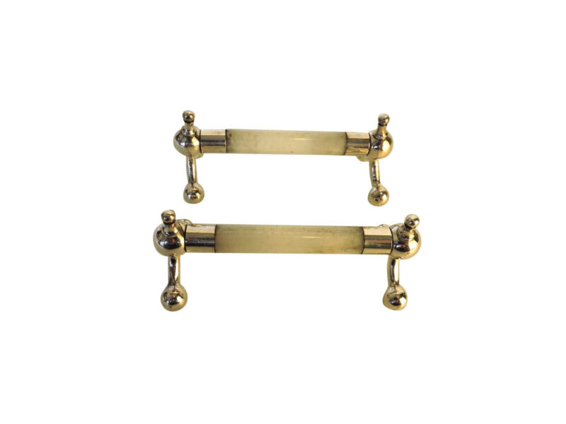 The rests have silverplate on each end and are holding the centre section of mother of pearl on each rest.