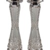 Pair of Tall American Crystal Vases with Sterling Silver Fluted Mounts c. 1900