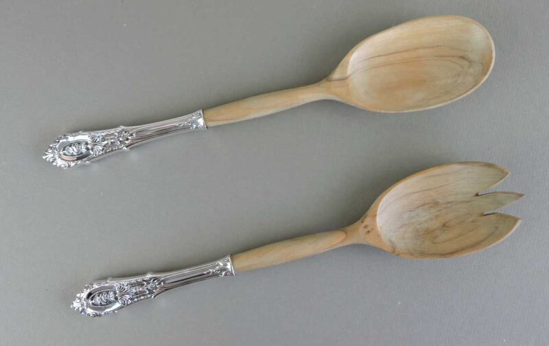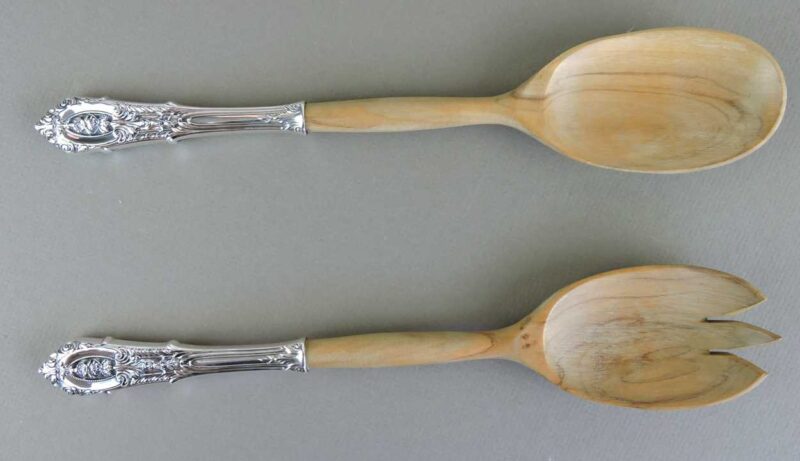 Pair of Wallace Sterling & Wood Salad Servers in ‘Rosepoint’ Pattern