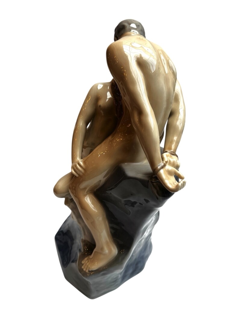 Passionate Royal Copenhagen Large 18.5 inch Porcelain Sculptural Group of “Prometheus & A Sea Nymph”, Designed by Theodor Lundberg (1852-1926)