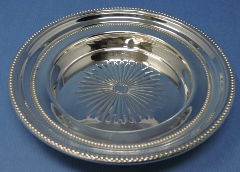 A lovely silver-plate on e.p. brass wine coaster, made by Primrose Canada.