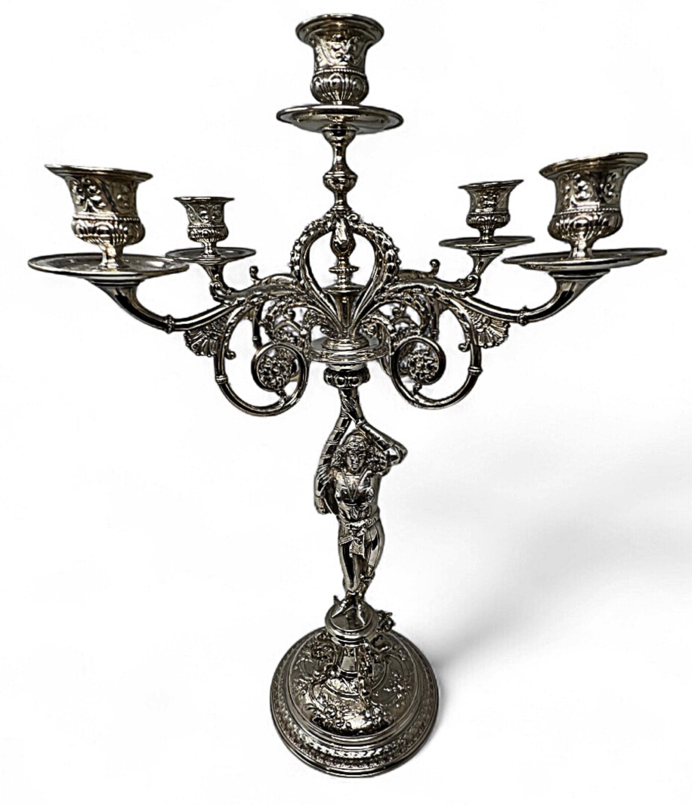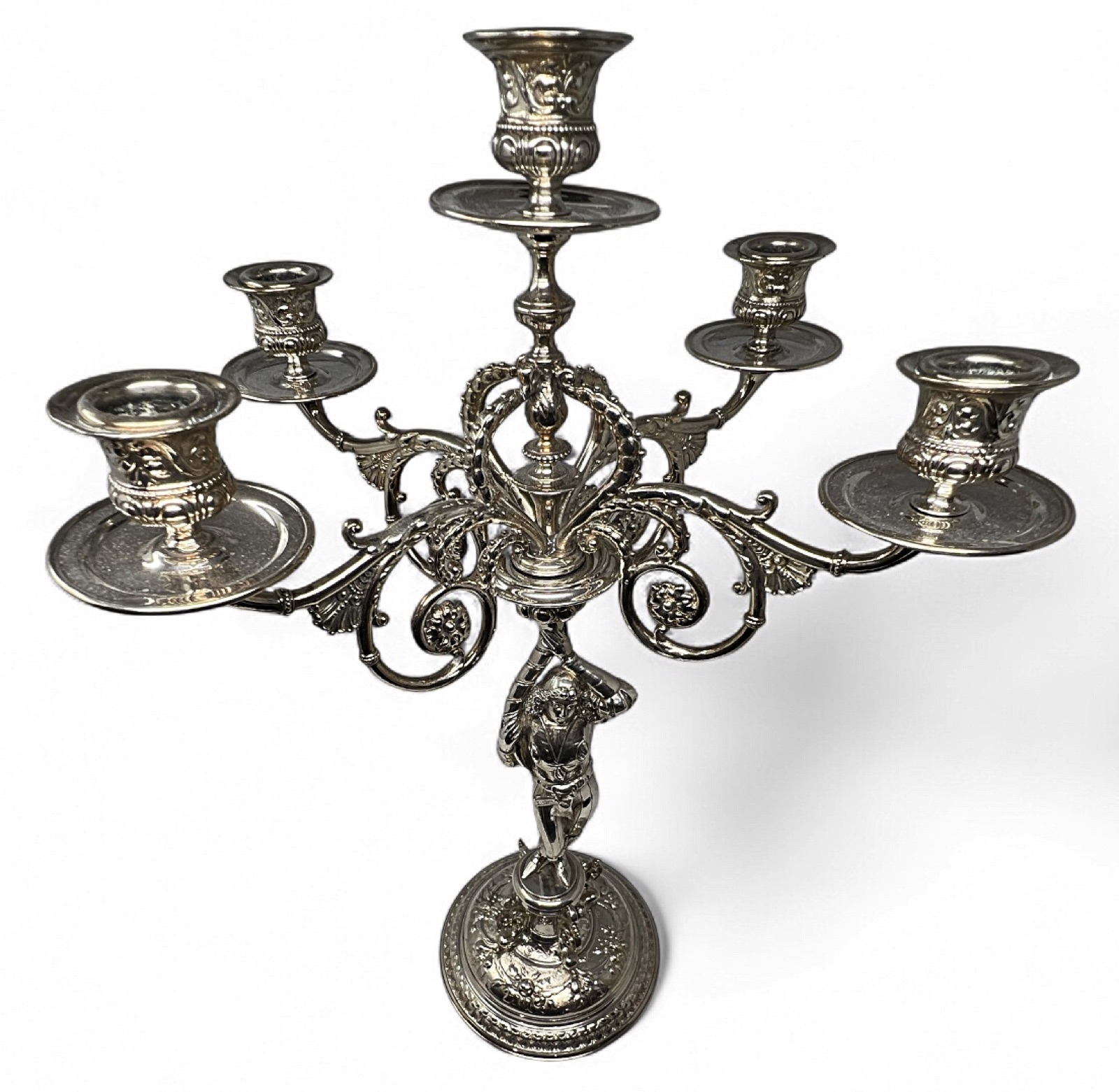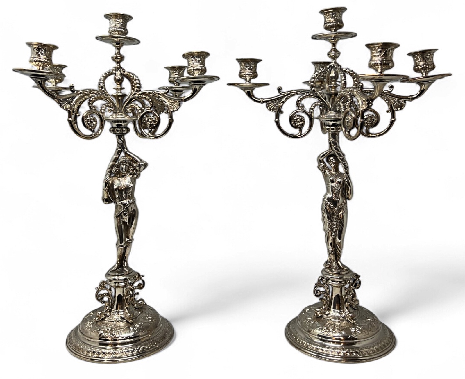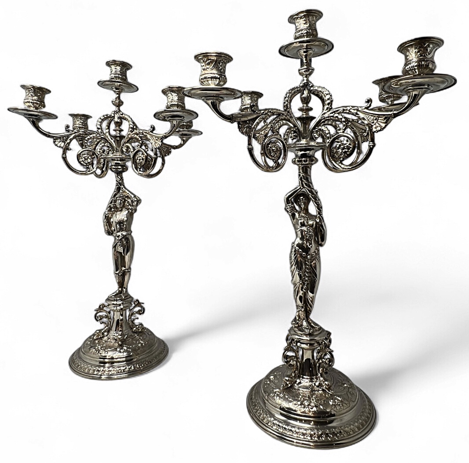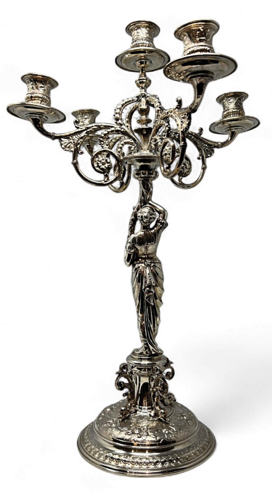 Rare & Elaborate Late 19th Century German Silverplate Candelabras with 5 lights by Renowned WMF Silversmiths