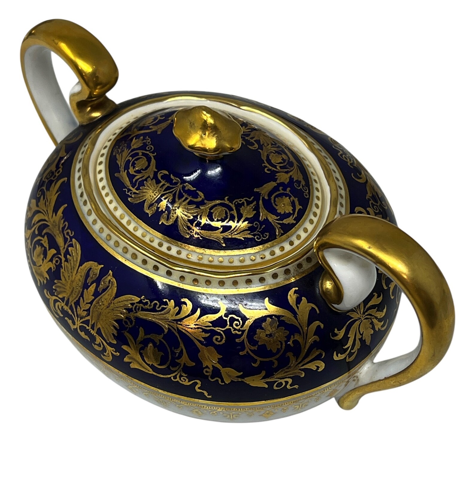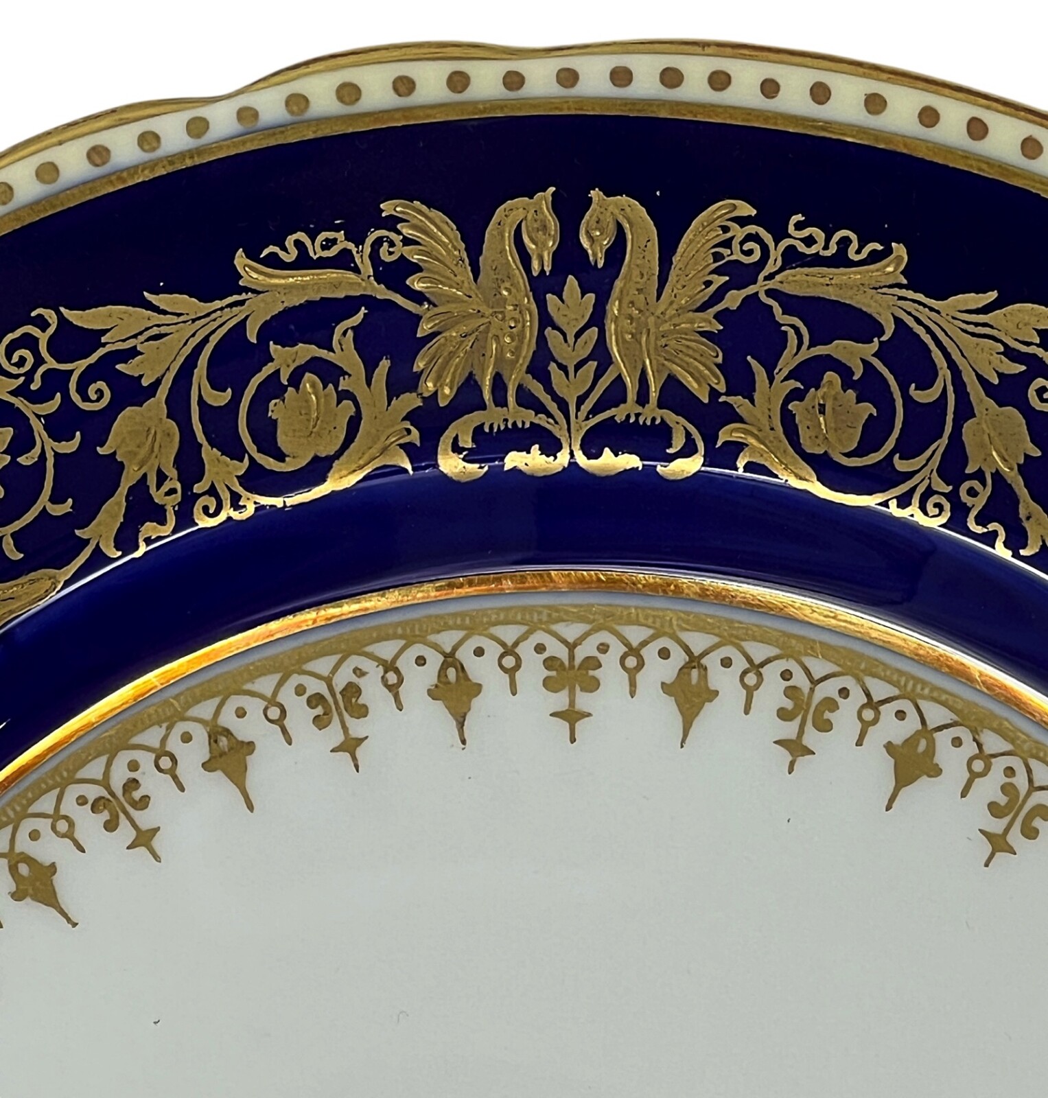 Rare & Elegant Aynsley Fine Bone China Set of “Seville Blue”, a Rich Cobalt Blue, Gold Encrusted “Dragon Pairs”, Pattern #6874 , Set of 66 Pieces: Serving 16 Place Settings Plus Creamer, Covered Sugar & Large Gravy Boat with Saucer, Early 20th Century