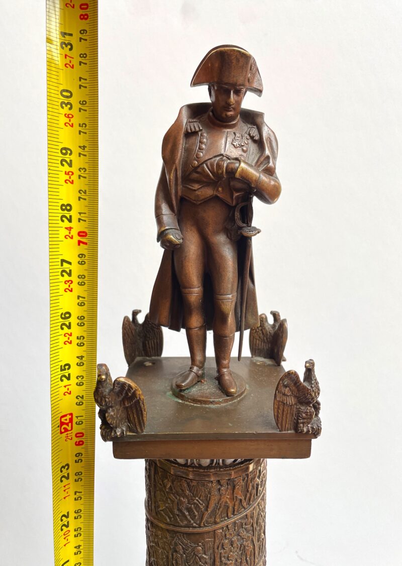 Rare French 19th Century Large Bronze of Vendôme Column, Paris – Napoleon Bonaparte in “Redingote” & Hat – 31 inches Tall – circa 1830’s.