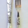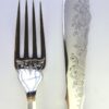 Each knife measures 8 1/4 inches long; each fork measures 7 inches long.