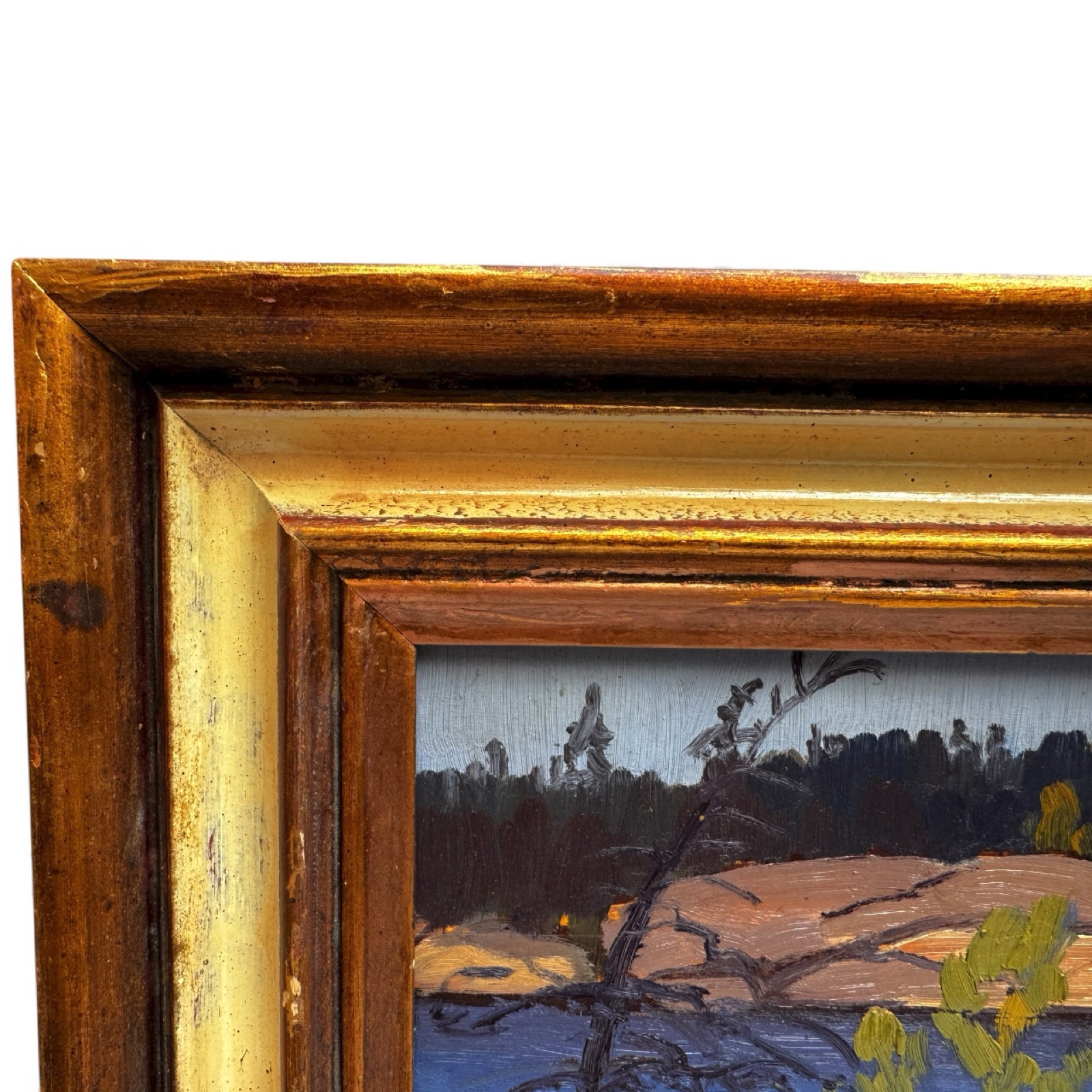 While firmly rooted in the post-Group-of-Seven tradition, Fediow’s style is more intimate and contemplative-less stylized than the bold abstractions of Lawren Harris or J.E.H. MacDonald, yet unmistakably part of their artistic lineage. The result is a serene, painterly evocation of Ontario’s wilderness-representative of the generation that carried the Group’s spirit into the 1950s Toronto art scene.