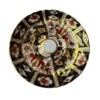 Fully decorated on the outside of cup with solid blue pedestal.  The interior partially decorated inside.