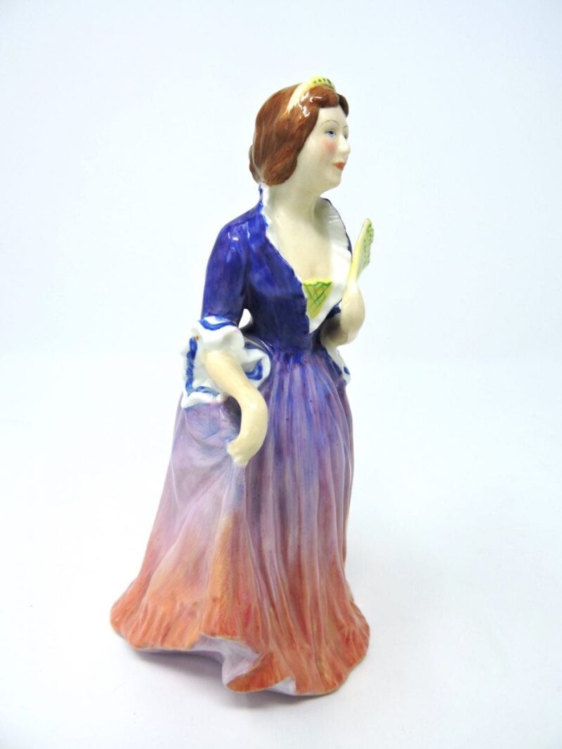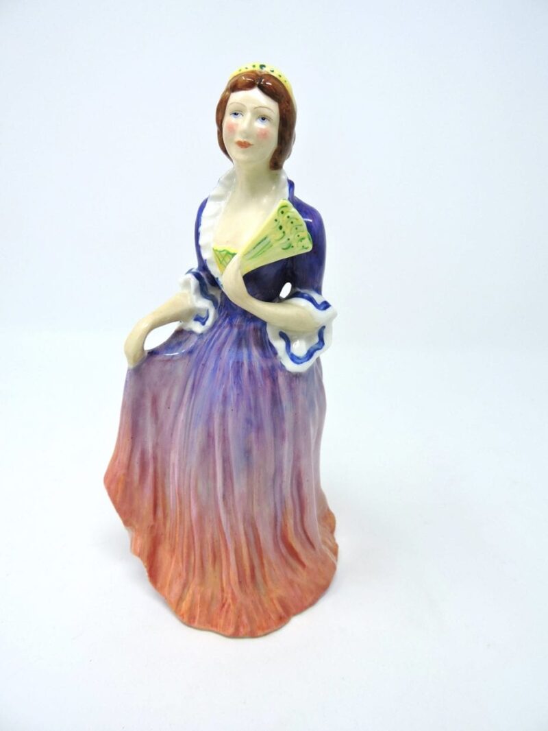 A lovely colourful bone china figurine by Royal Darwood of England, titled “Lady Jane”.  The figurine is of a refined woman holding a fan in her left hand and her skirt in her right hand.