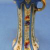 A sweet, small two-handled hand painted porcelain vase, circa 1890, decorated with panels of flowers and fruit and gilt on the alternating panels and on the handles and scalloped rim of the vase.