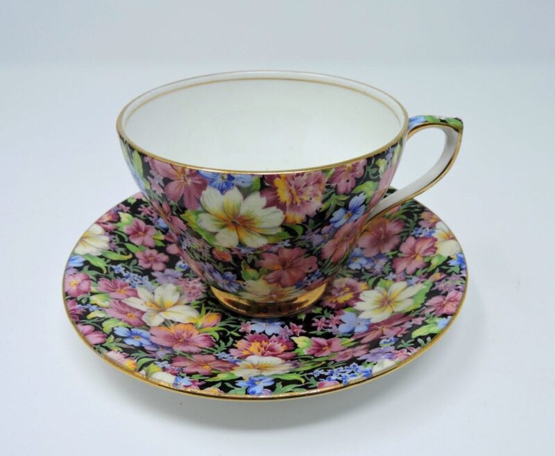 v** SOLD ARCHIVES **vA wonderful Royal Winton English bone china chintz cup and saucer in the “Florence Pattern”.