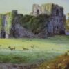 A stunning Royal Worcester piece, that is hand painted and signed by the artist Harry Aytron. The piece depicts a delightful english sunset landscape scene featuring an old english castle (Oystermouth Castle.), lavish green hills, whimsical trees and sheep.