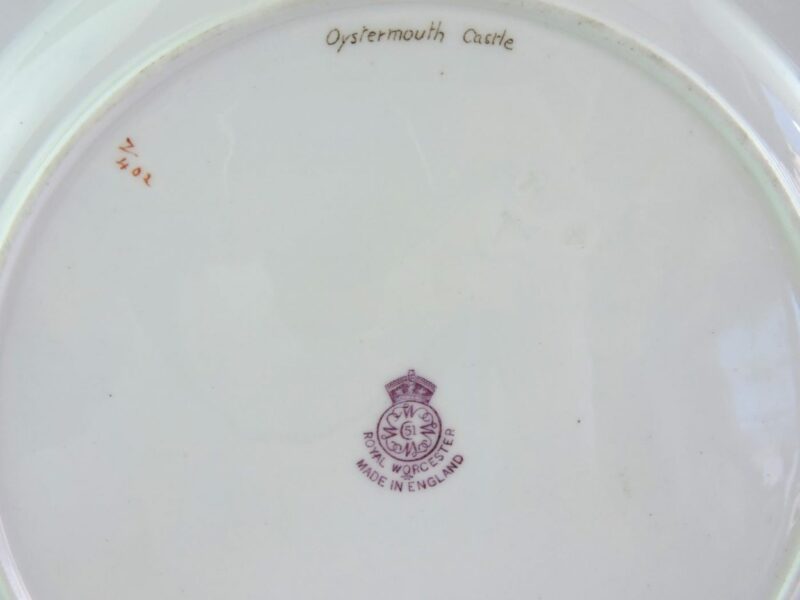 Marked: In red: Royal Worcester. Made in England. In green: Oystermouth Castle. In orange: Z 402.