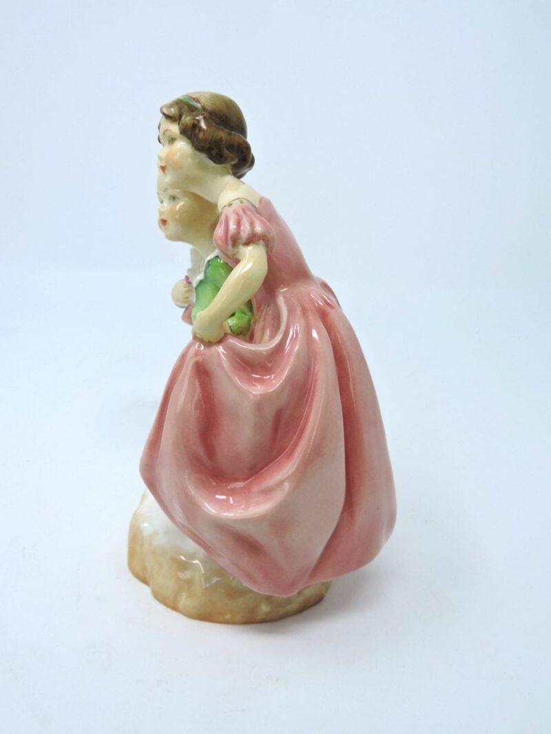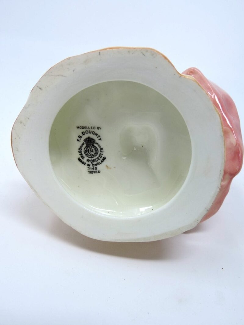 On the underside is the Royal Worcester maker’s mark and reads “Modelled by F.G. Doughty. Bone China. Royal Worcester. Made in England. 3149. Sister.”