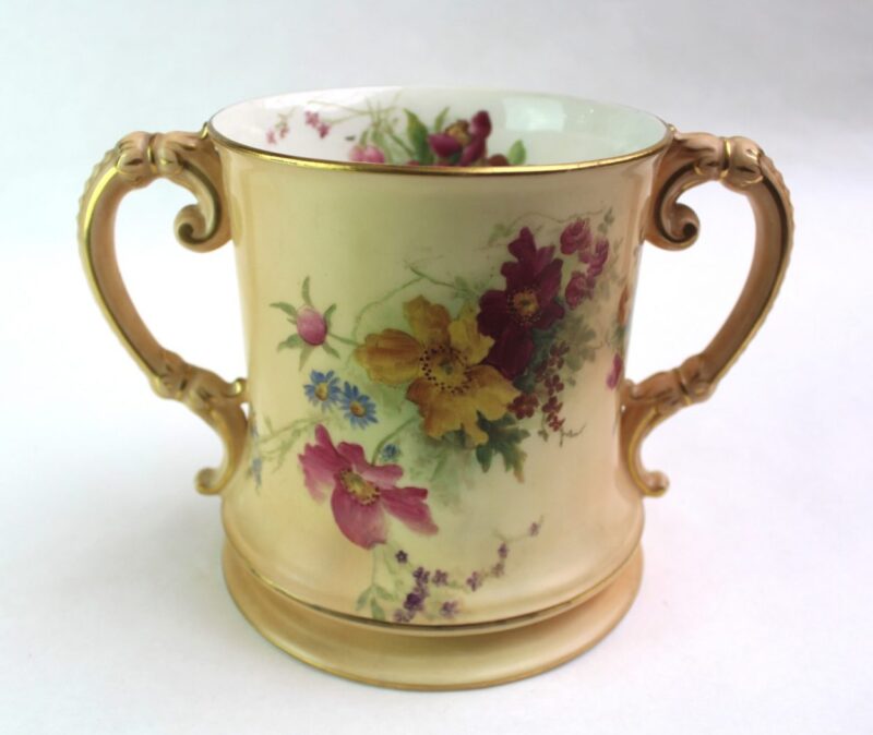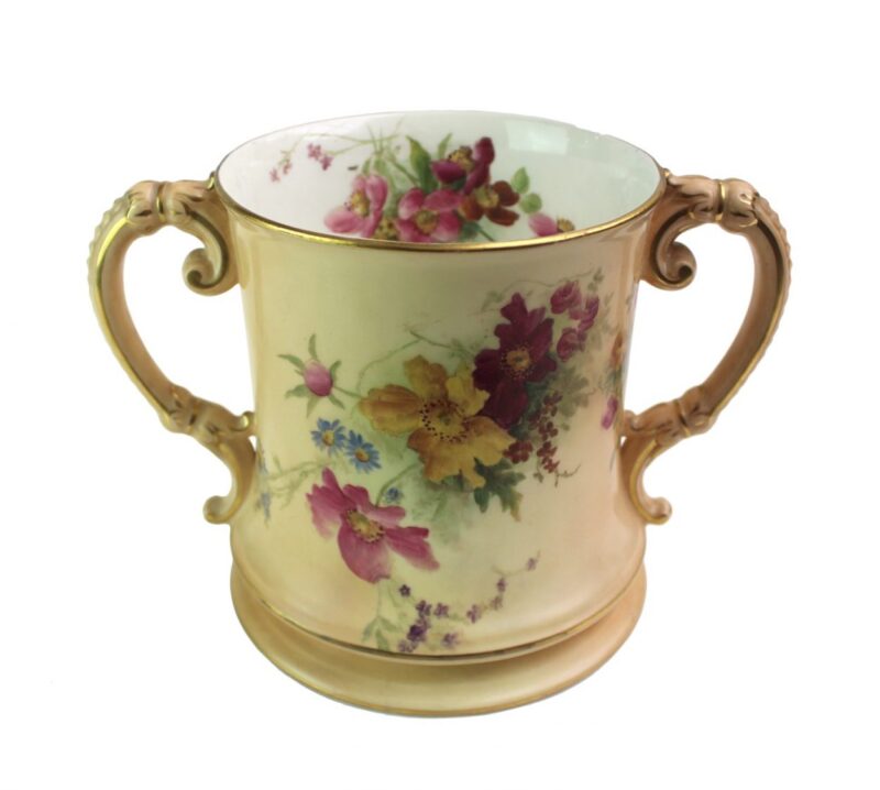 Royal Worcester Blush Ivory Hand Painted – 2 Handled Loving Cup dated 1912.