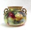 A lovely hand painted Royal Worcester 2 handled squat vase with bright yellow and red roses.  Beautifully painted.