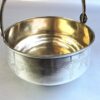 The basket with handle measures 5 inches tall and is 4 1/4 inches in diameter.
