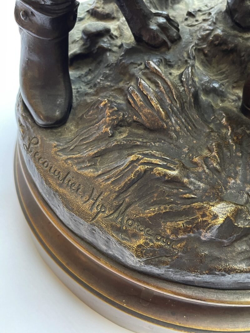 The bronze is signed by the artist: “Lecourtier Hip. Moreau” for Hippolyte Francois Moreau (born in Paris 1832 – died 1926).
