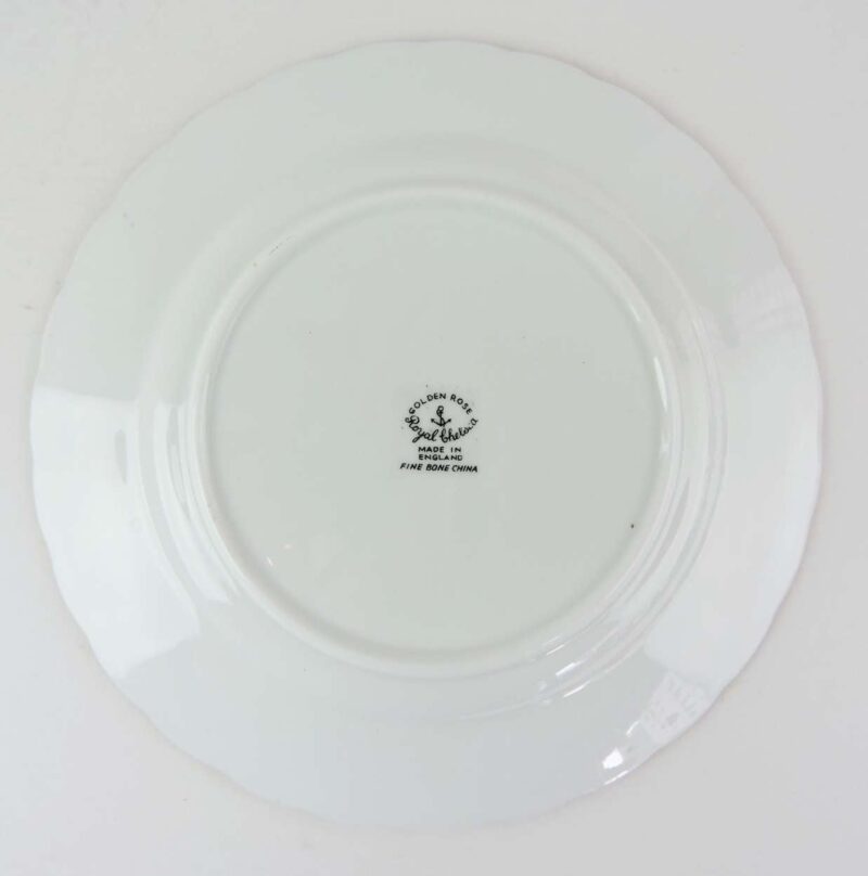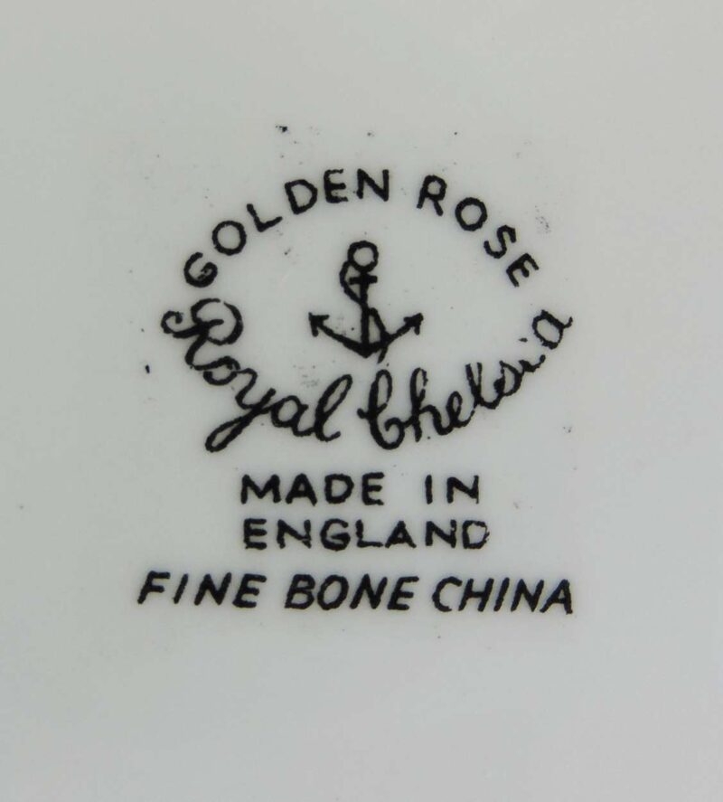 Marked: On the bottom, in black it marked with, ‘ Golden Rose, Royal Chelsea. Made in England. Fine Bone China.’