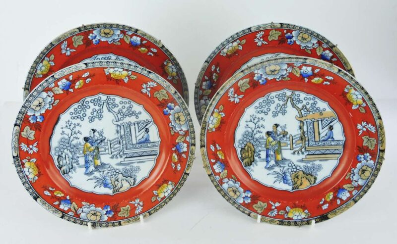 v** SOLD ARCHIVES **vSet of 4 – 19th Century English Chinoiserie Plates.