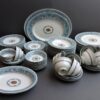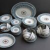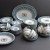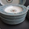 v** SOLD ARCHIVES **vA beautiful set of 10 place settings of bone china plus 3 serving pieces by Wedgwood England in the blue “Florentine” pattern.