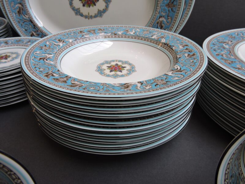 Each piece is stamped on the underside with the Wedgwood maker’s mark and reads: “Wedgwood Bone China. Made in England. Florentine W2714”.