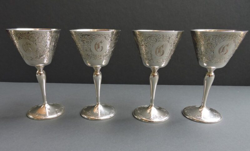 Set of 4 Birks Sterling “Sherry” Stemmed Drinking Cups – Beautifully Engraved – circa 1910
