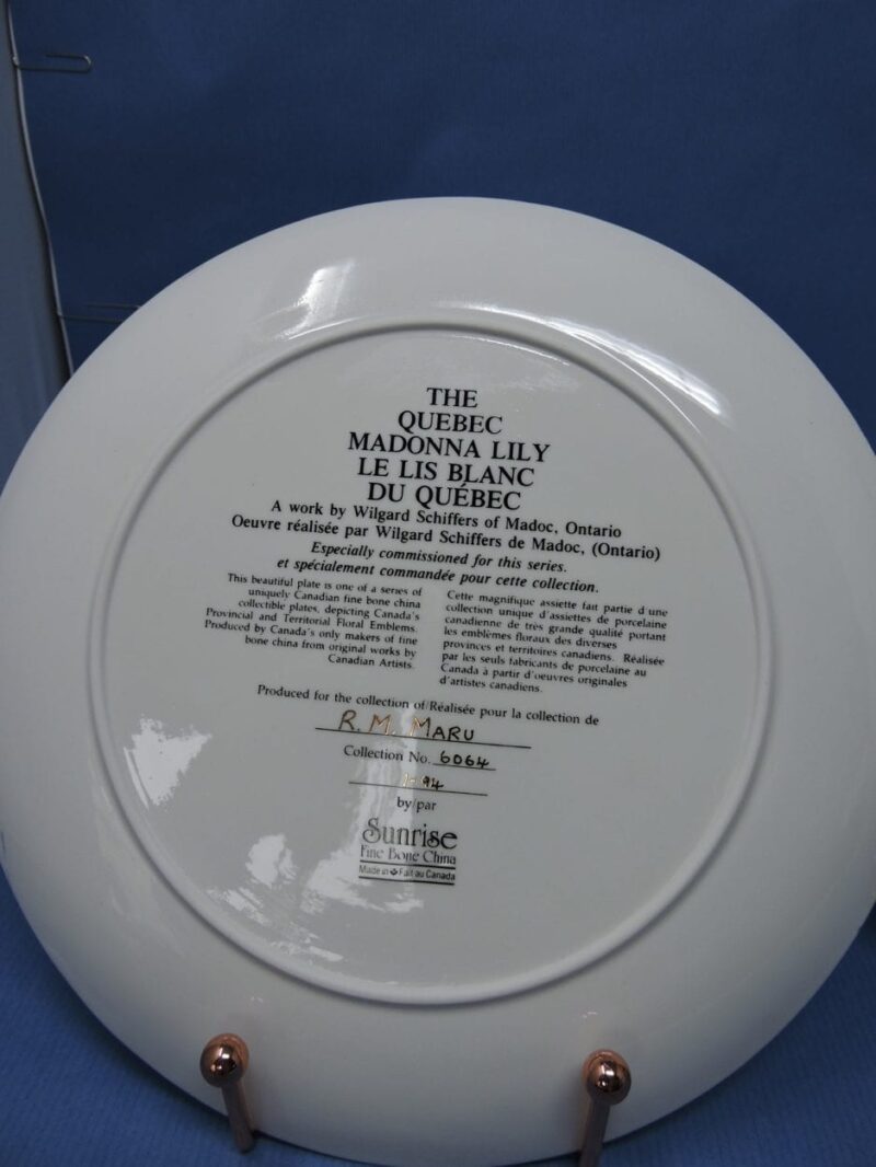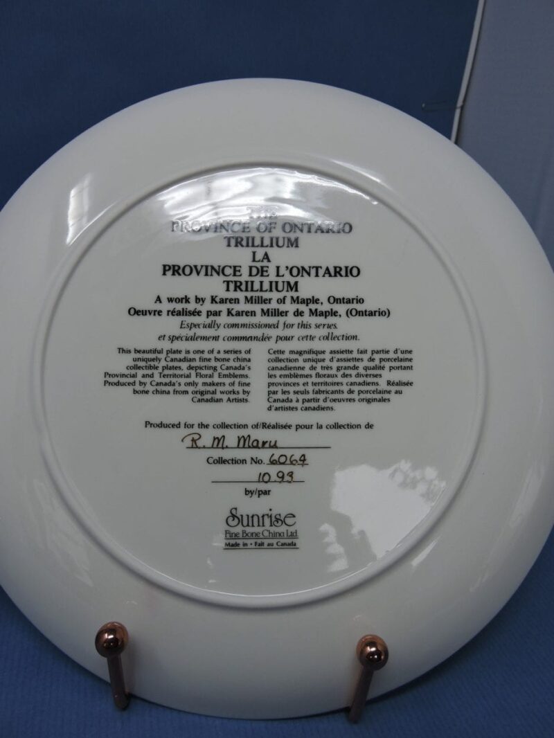 Set of 9 Sunrise Bone China Collector Plates – Provincial and Territorial Floral Emblems – 1992 to 1993