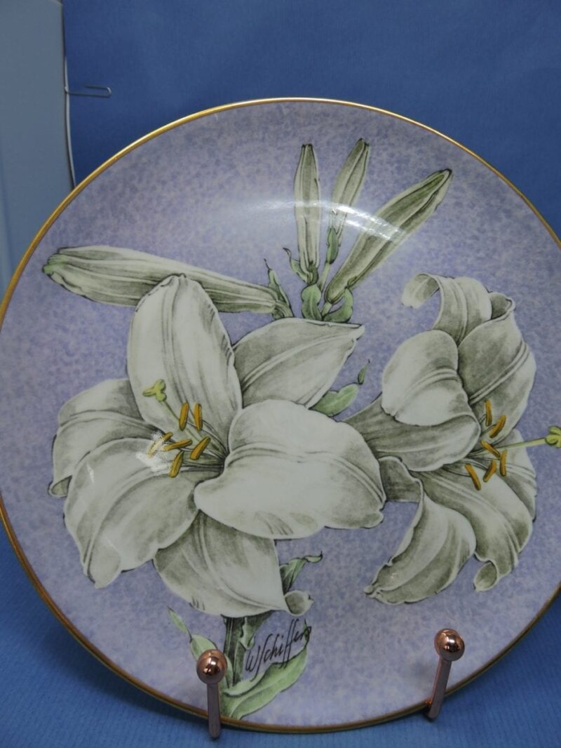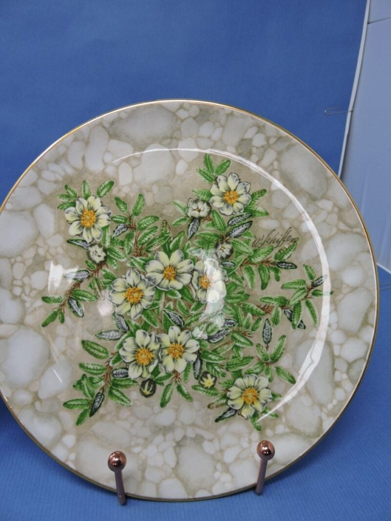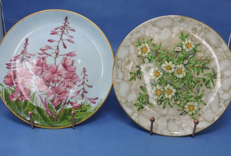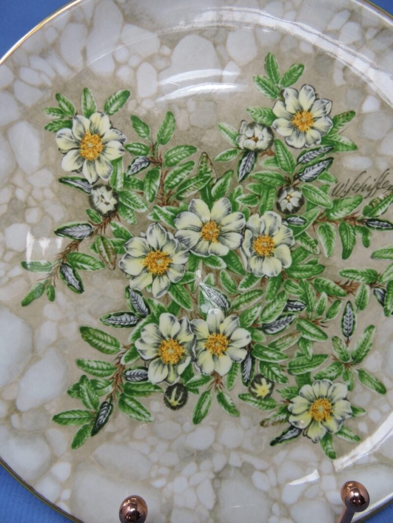 On the back of each plate, there is a description of the floral emblem, the artist’s name and location and information about the collection number and date created.