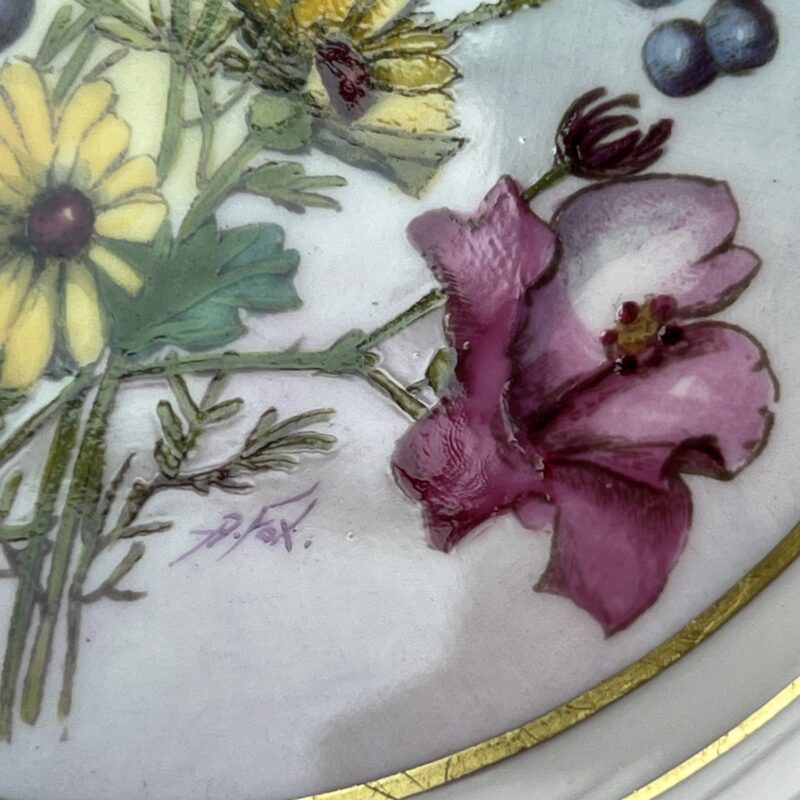Set of Twelve Antique Mintons Porcelain Botanical Cabinet Plates Hand Painted by A. Fox, Circa 1915