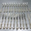 v** SOLD ARCHIVES **vA gorgeous solid sterling silver 24 piece (12 knives and 12 forks) fish cutlery set in the “American Beauty” pattern. The set was made by Mauser Manufacturing Company, using the only design to survive when the George Shiebler Co. (a noted American silversmith 1846 – 1920) went under and was bought out. All other Shiebler patterns and work was destroyed.