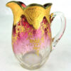 The pitcher is wonderfully decorated with gold leaves and a thick patterned gold rim. There is a clear glass applied handle.