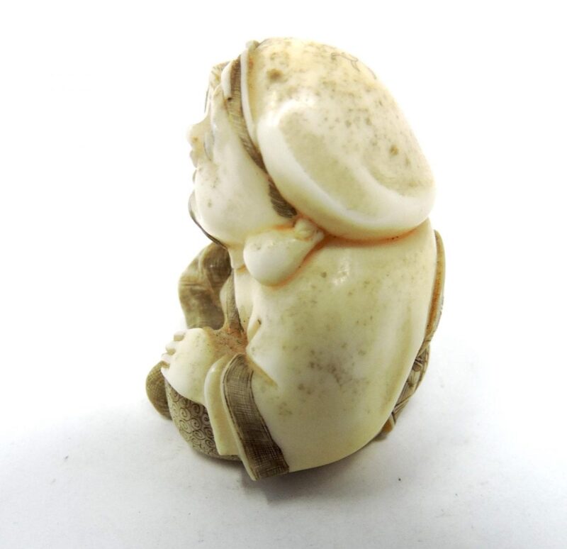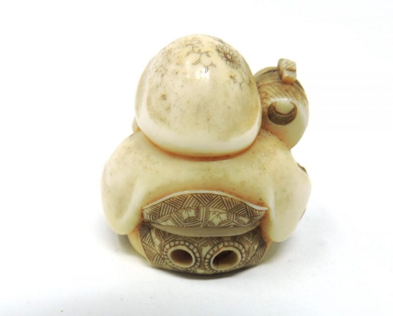 The netsuke is 1 1/4 inches tall x 1 1/2 inches wide and is in excellent condition.