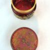 A beautiful Moser glass small covered box, circa 1890, in the cranberry colour with elaborate enamel decoration of vines and leaves in gold and silver.