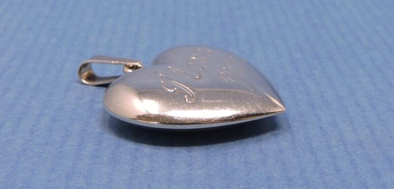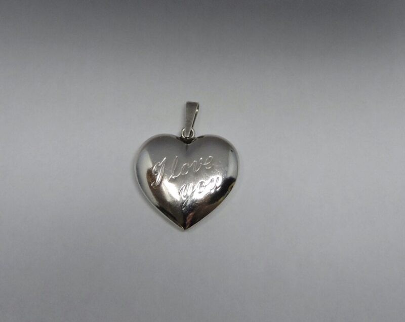 A sweet sterling silver (.925) heart shaped pendant, engraved with “I love you” on the front.