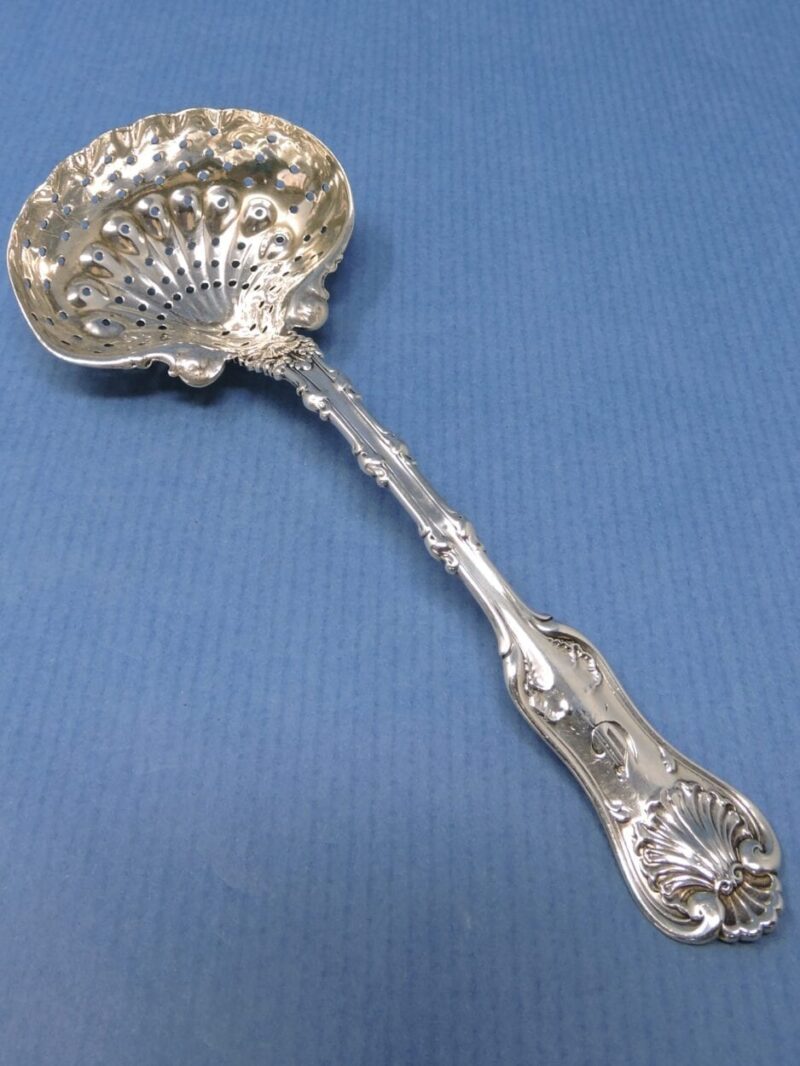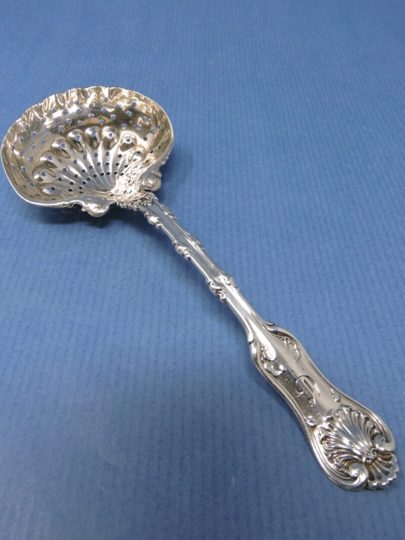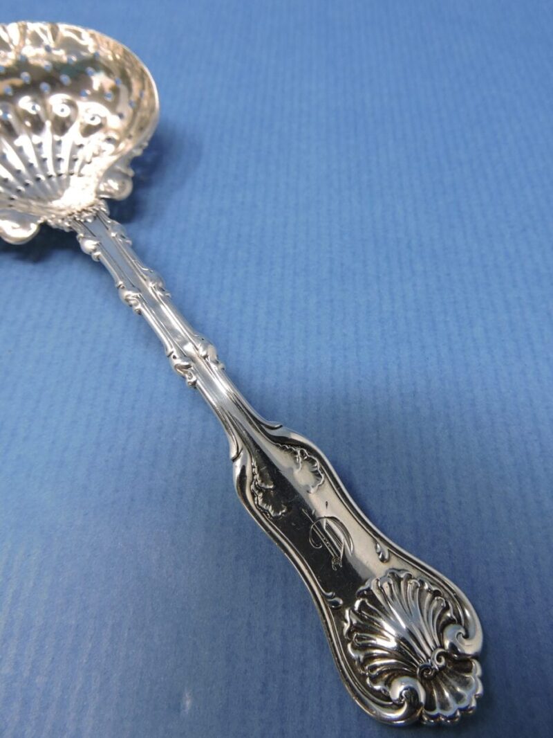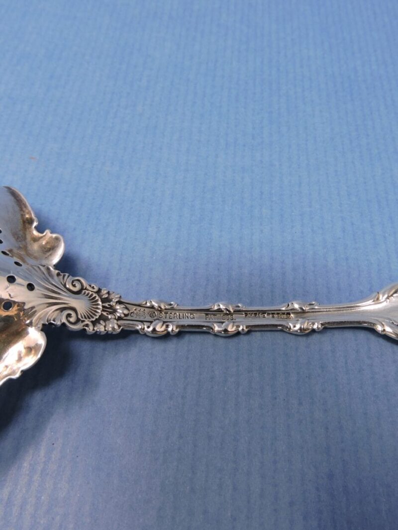 v** SOLD ARCHIVES **vA lovely Amercian sterling silver serving spoon with a pierced bowl, made by Whiting and retailed through Ryrie Brothers (Birks) in the “Imperial Queen” pattern. The spoon was for sifting sugar over fruit.