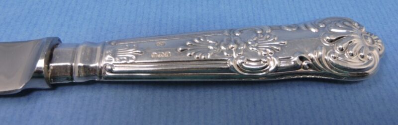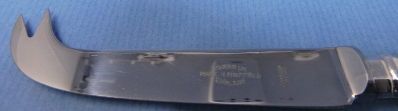 The blade of the knife is stamped  “Viners Ltd. Made in Sheffield England. Stainless Deluxe” and the hallmarks are stamped on one side of the handle.