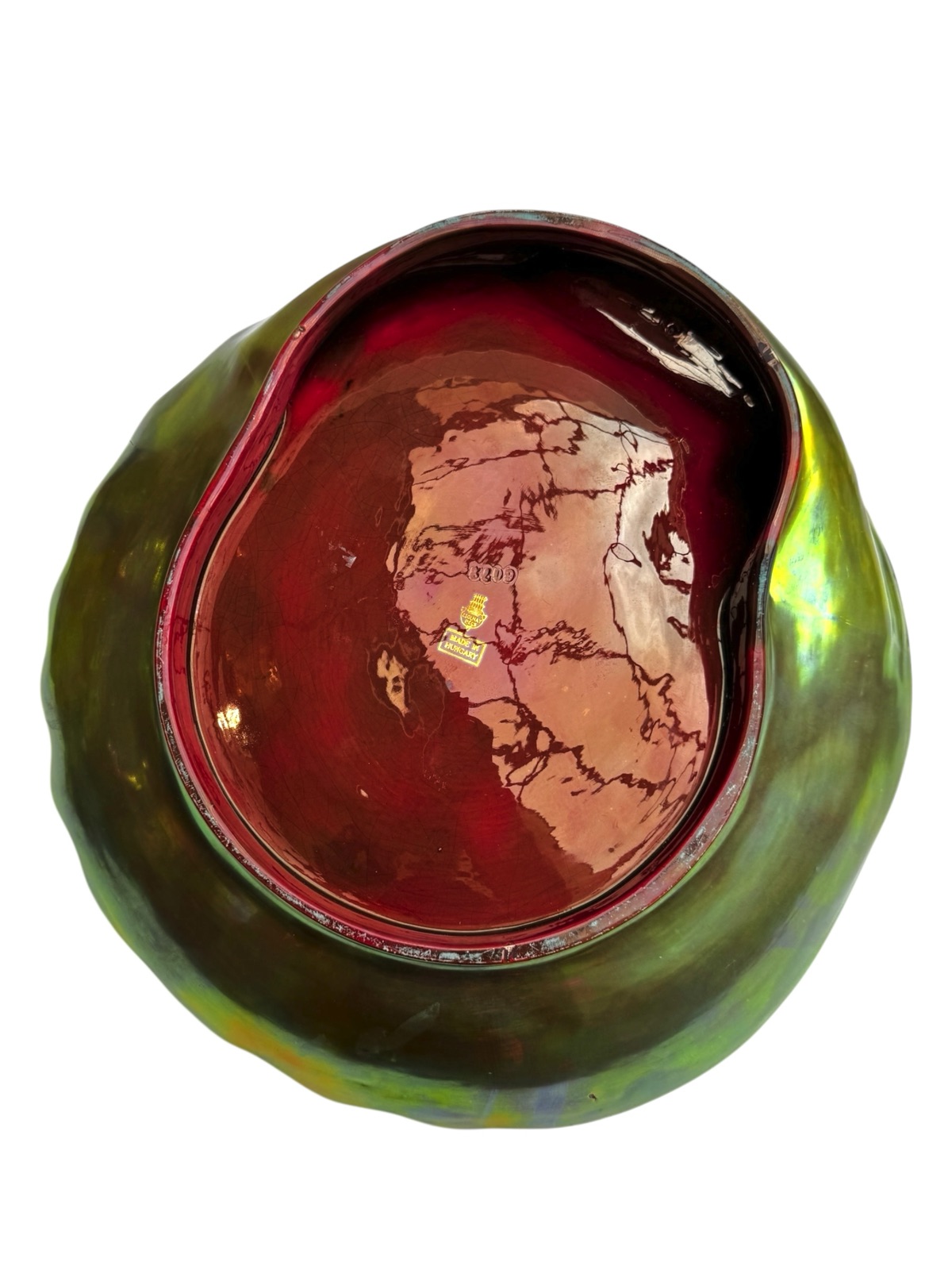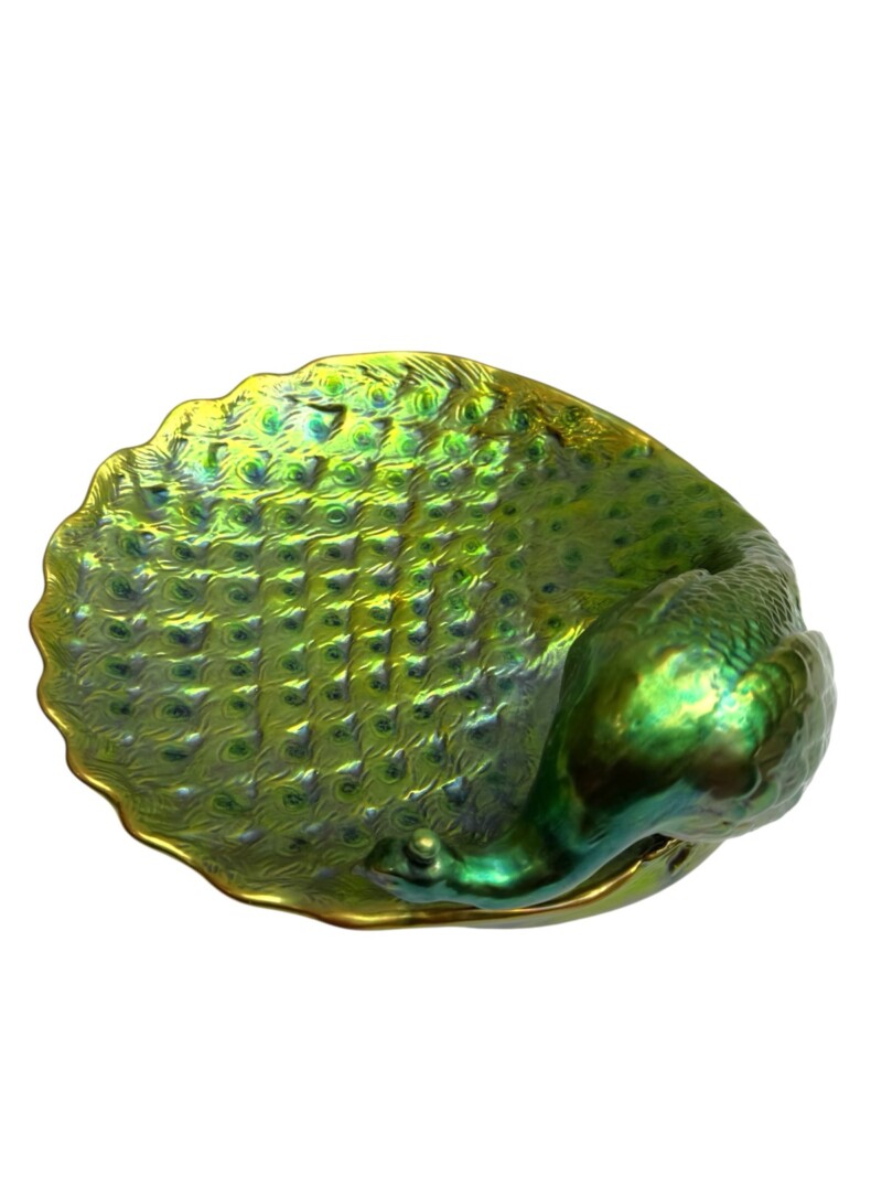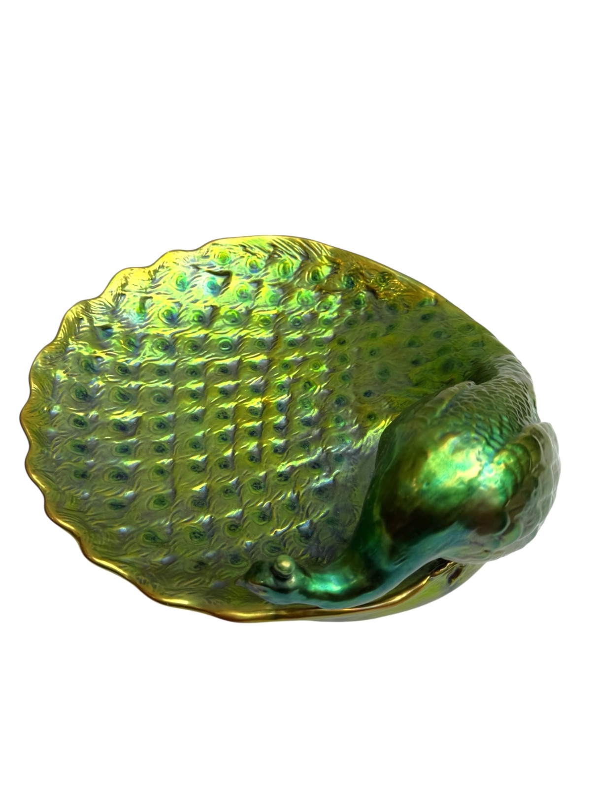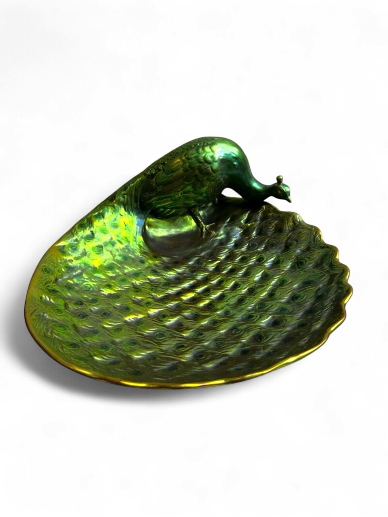 Striking Large Hungarian Zsolnay Peacock Bowl in Lustre Green