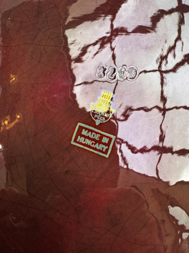 Marked on the underside: Zsolnay Pecs, Made in Hungary.