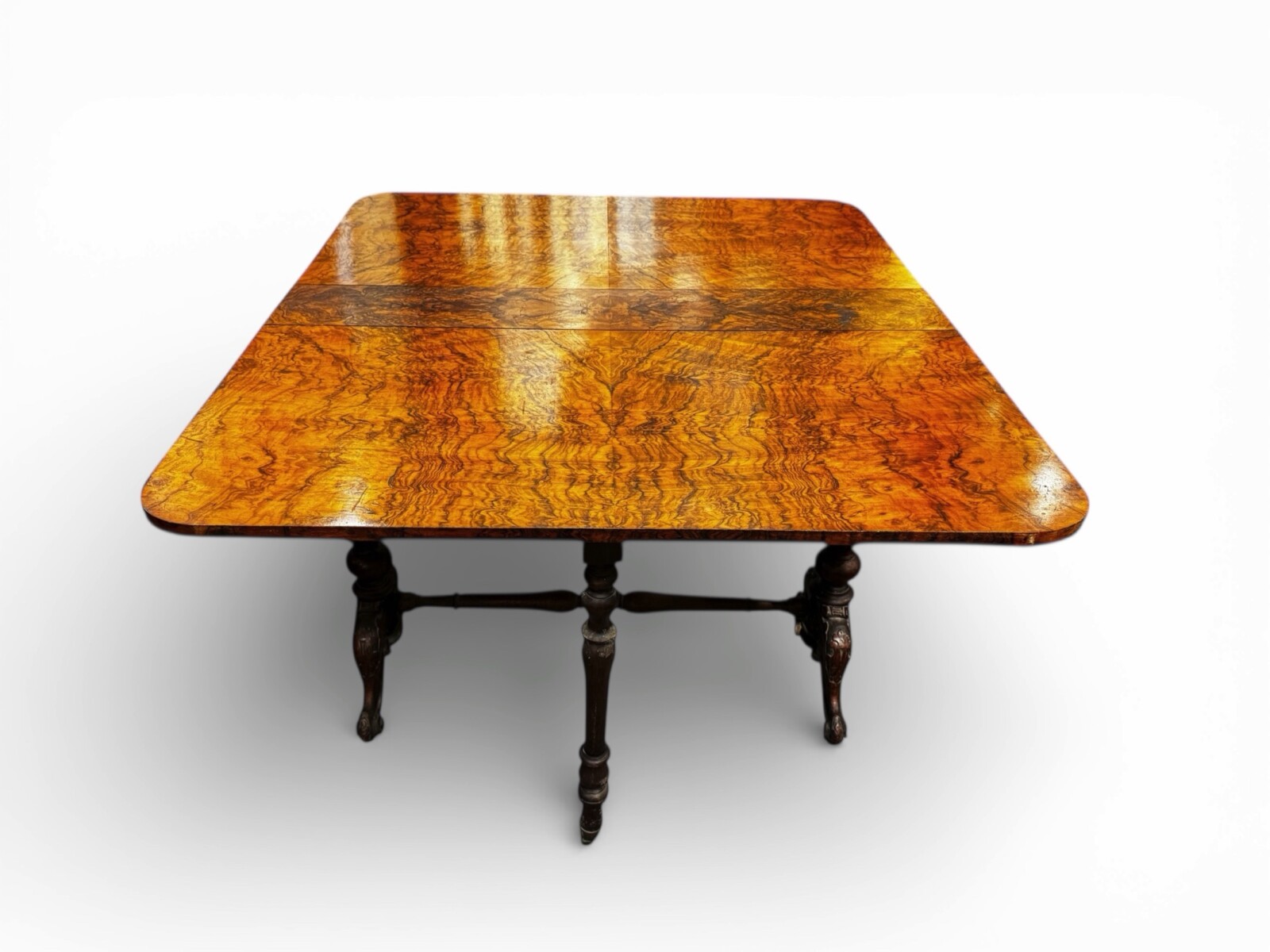 A very versatile table and an absolutely stunning example of burled walnut patina.