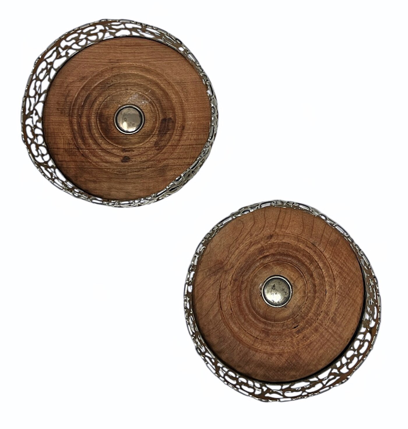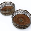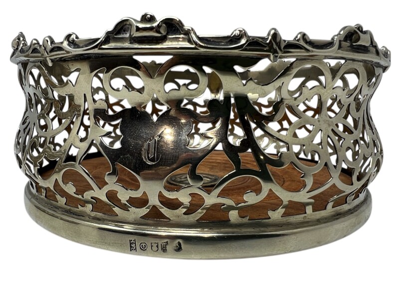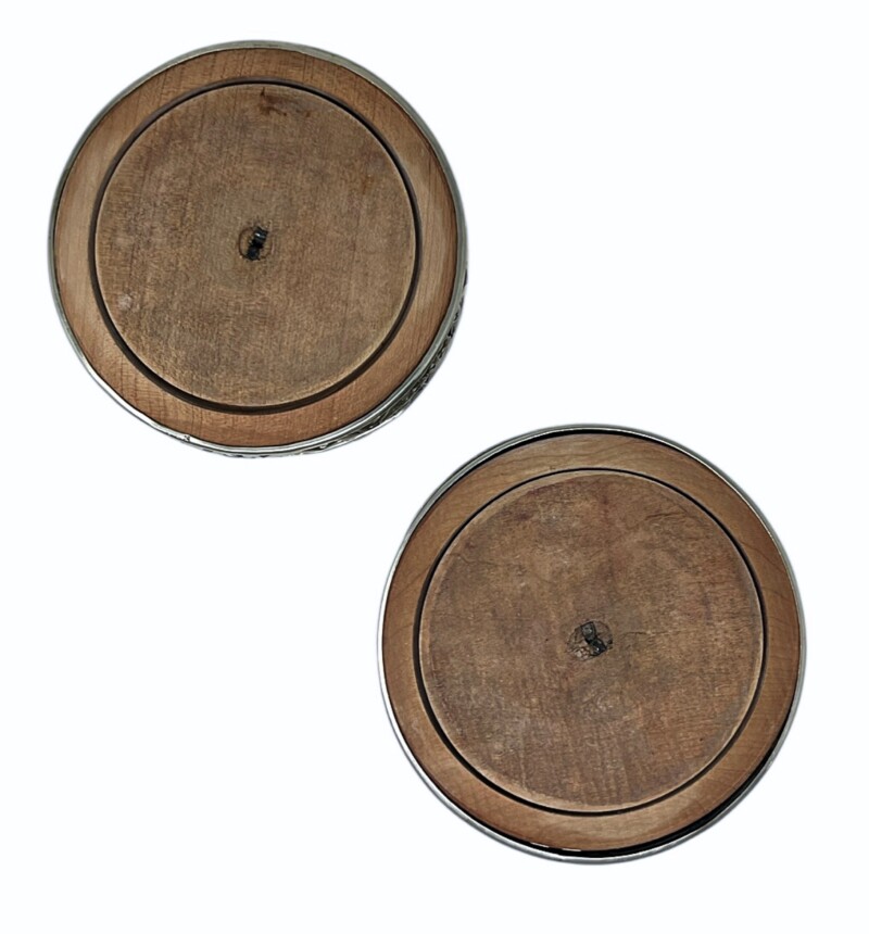 Preserved in very good condition, these coasters maintain the crispness of their reticulated details and the integrity of their original wooden bases. Their substantial size and refined ornamentation make them a rare find for collectors of continental silver or those looking to add a touch of authentic heritage to their dining collection. This pair serves as both a testament to Dutch artisanal history and a practical luxury for modern entertaining, bridging the gap between museum-quality decorative art and everyday elegance.