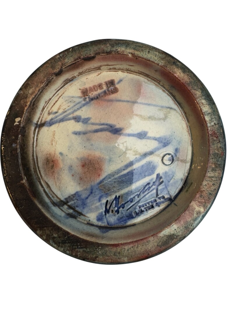 Impressed marks on bottom:  Moorcroft made in England – with impressed facsimile signature, Potter to the Queen and William Moorcroft’s signature in blue.