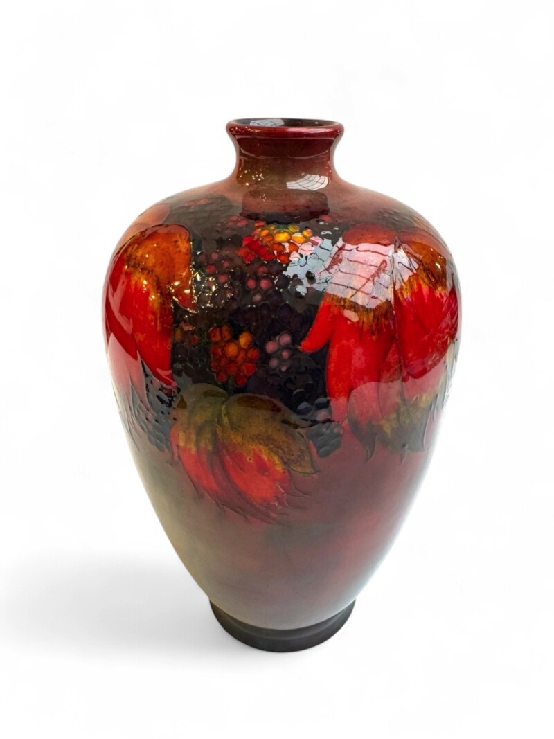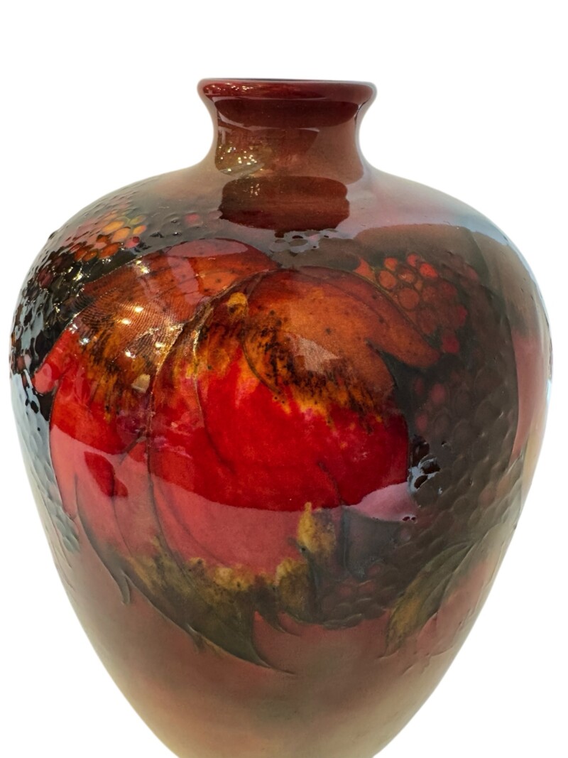 Stunning & Large William Moorcroft Flambé Vase in Berry & Leaf Pattern, Circa 1930’s