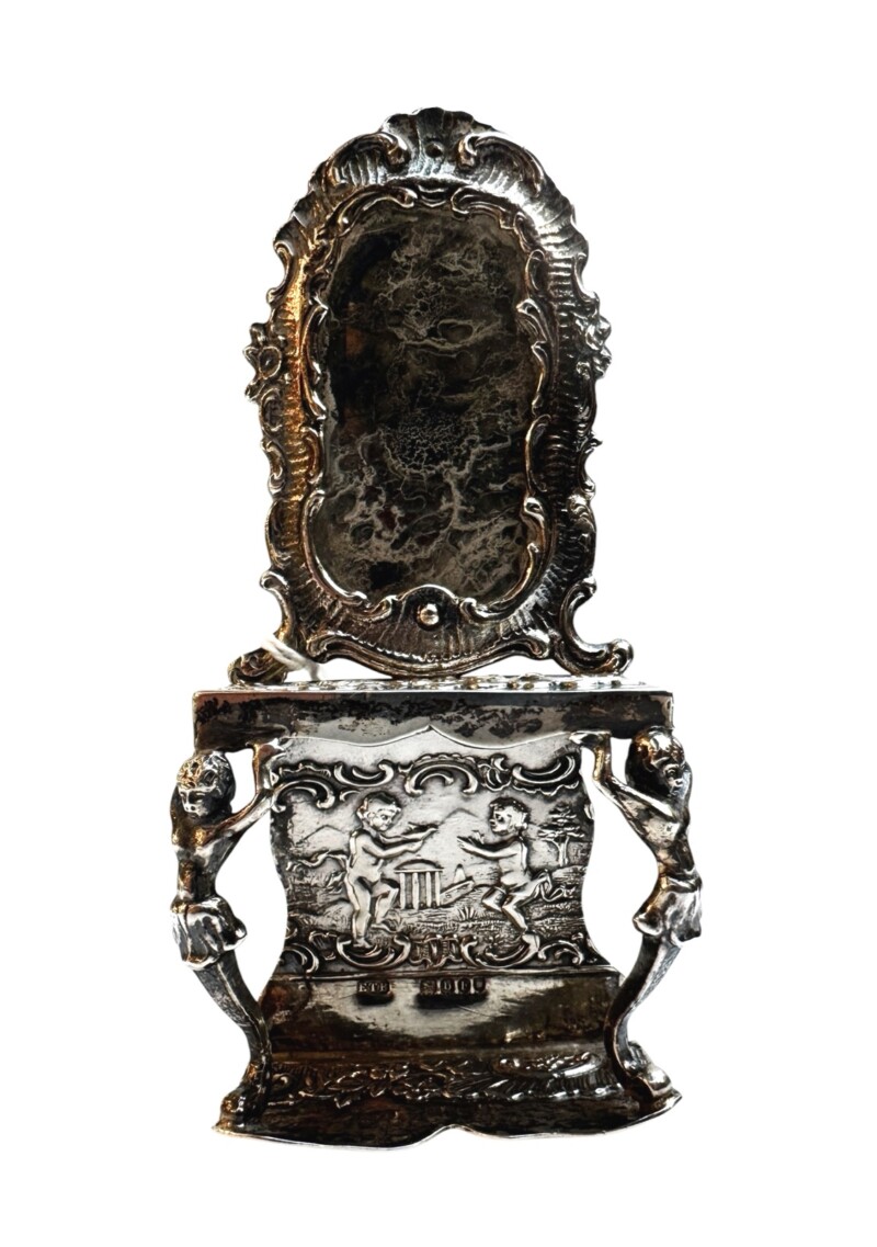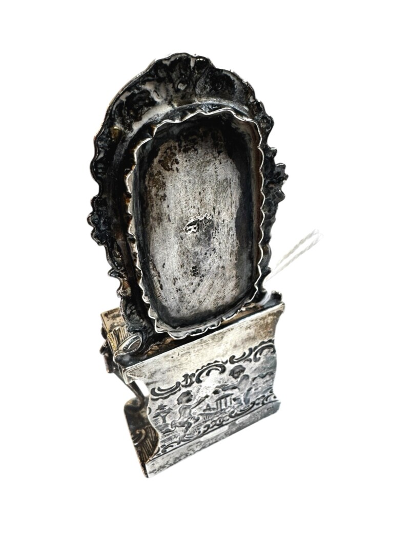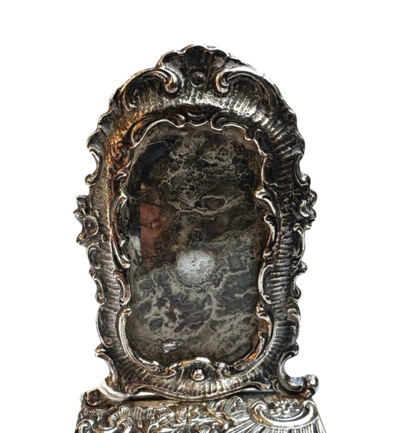 Many silver collectors and dealers who appreciate Hanau silver are attracted to the ornate decoration and unusual history. This miniature hall console & mirror is superbly designed. It is in excellent condition. A very well made novelty piece with the history of “Hanau” in the style of the 18th century sterling silver miniatures of the Dutch and the French.