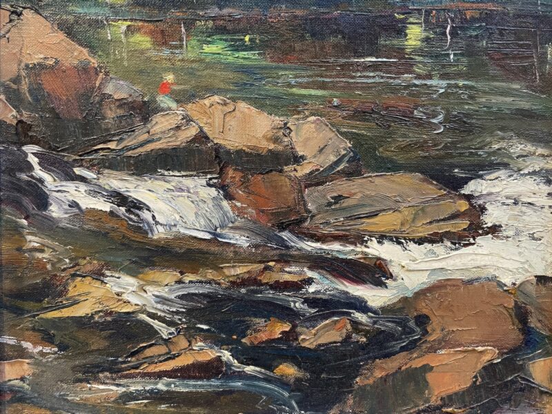 “Swift Water – Moores Lake, Haliburton – 1940” – Canadian Painting on Board – Langley Thomas Donges (1901-1992)