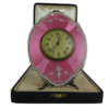 Swiss Silver .935 Pink Guilloché Enamel Clock With Original Box circa 1910