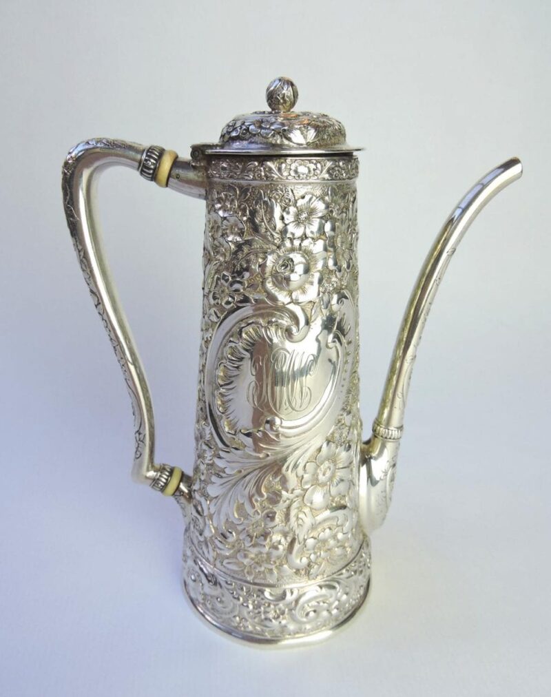 Tiffany & Co. Sterling Silver Repoussé Turkish Coffee Pot circa 1880