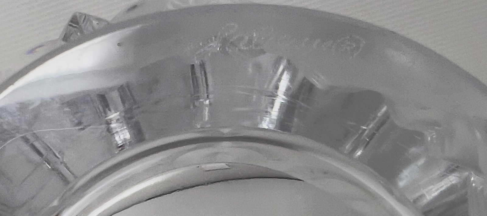 Large and heavy crystal vase created by the famous Lalique glassworks. René Lalique (1860–1945) was more than a glassmaker — he was one of the greatest designers of the Art Nouveau and Art Deco periods. He began as a jeweller, working with Paris’ elite (Cartier, Boucheron), then revolutionized glass design by blending fine art with functional forms. His motto was essentially “make glass speak like sculpture” — which still defines Lalique’s aesthetic.
