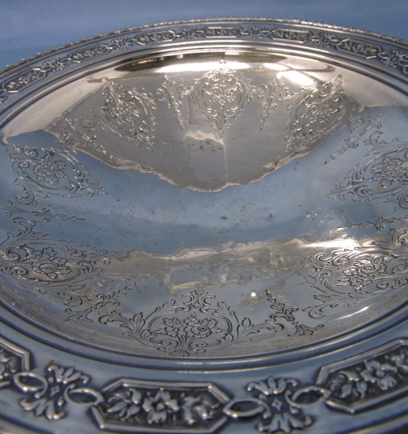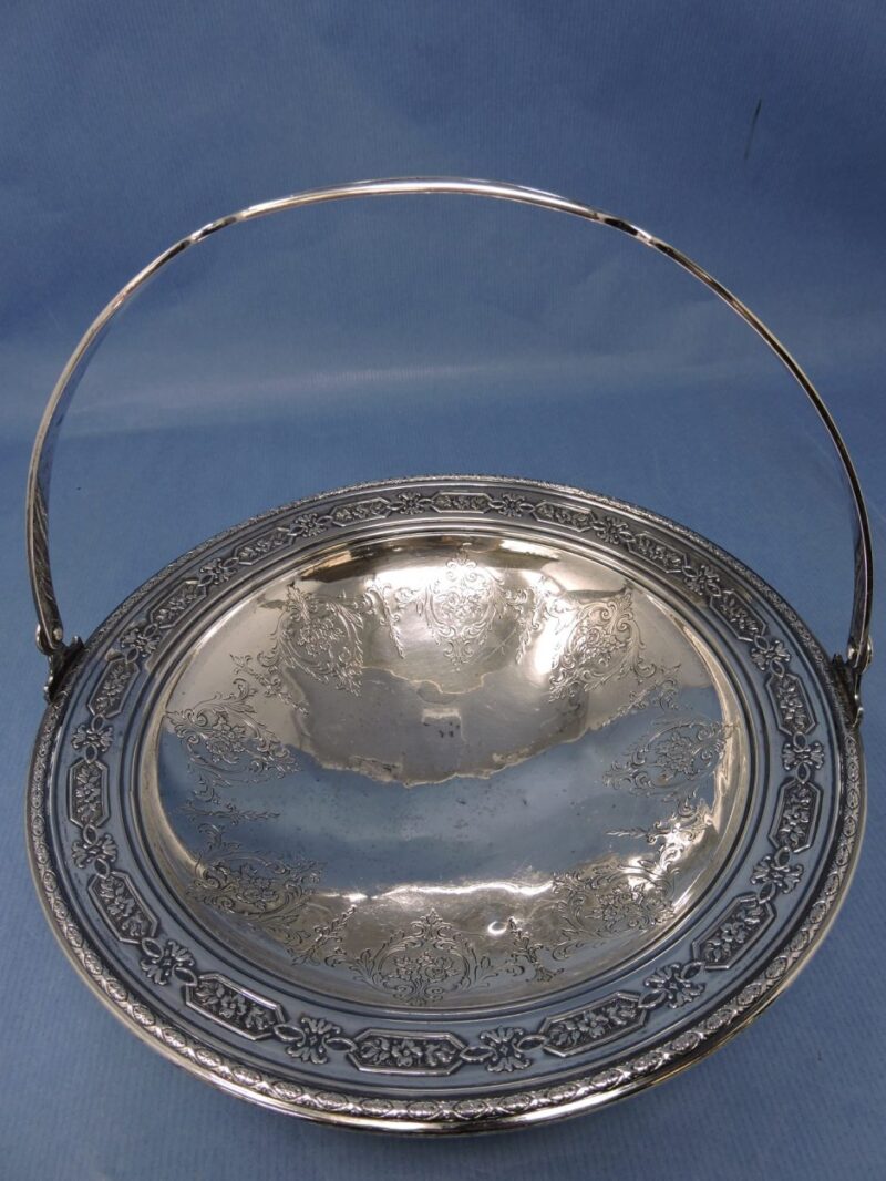 Towle USA Engraved Sterling Silver Basket with Hinged Handle, Floral Decoration
