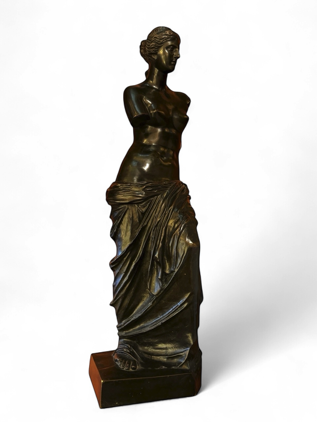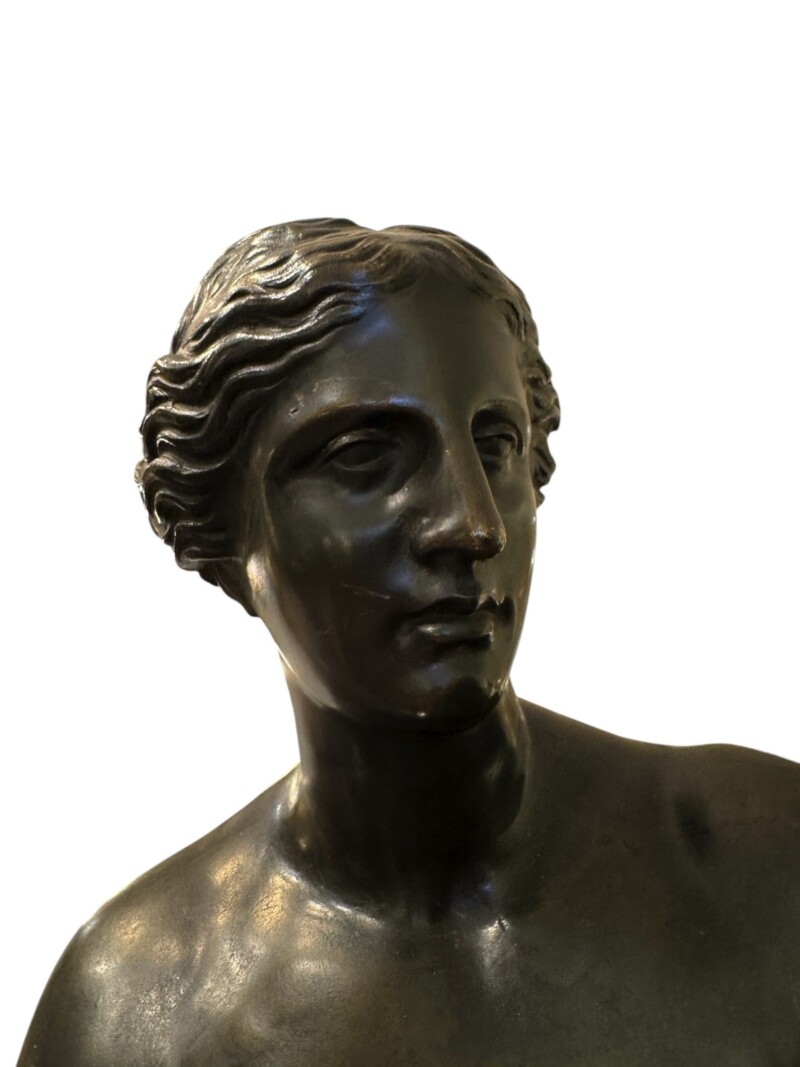 Art, GeneralA very fine and tall “Grand Tour”, circa 1850-1890, bronze of the famous “Venus de Milo” with an excellent rich umber patina. The “Grand Tour” was principally a 17th to late 19th-century custom of a traditional trip through Europe, with Italy as a key destination. Initially undertaken by upper-class aristocratic young British men & later women who were typically accompanied by a tutor or family member when they had come of age (about 21 years old). As well as marvelling at artistic masterpieces, “Grand Tourists” brought back souvenirs to commemorate and display their journeys at home.